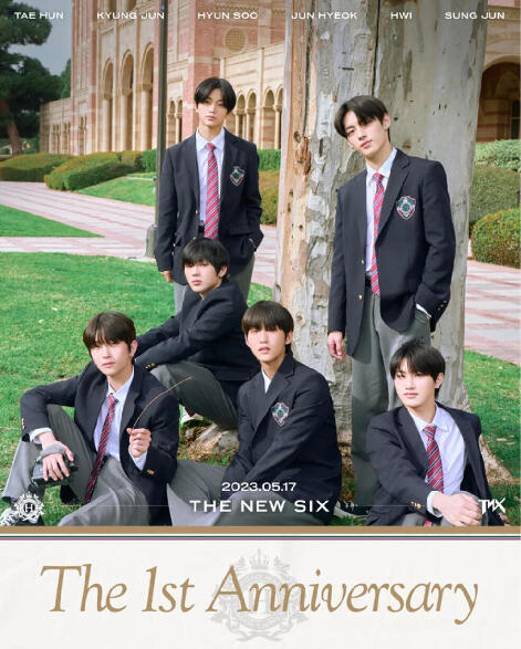 El 17 de mayo del 2023, el grupo celebró su primer aniversario con una transmisión especial. En ella, los miembros hicieron su saludo característico: “ALL THE WAY UP! Hello we are THE NEW SIX”Esta vez, hubo un ligero cambio: ya no se presentaron como “TNX”, sino como “THE NEW SIX”. Después de la transmisión, todas las redes sociales del grupo cambiaron oficialmente a “THE NEW SIX”.Es importante aclarar que el grupo siempre se llamó THE NEW SIX, solo que al principio usaron el acrónimo TNX para promocionarse.